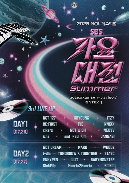 'SBS 가요대전' 26일~27일 열린다. 첫날에는 NCT 127, 도영, 있지, 비:퍼스트, 아이브, 엔믹스, 싸이커스, NCT 위시, 미야오, 이즈나, 폴킴, 잔나비가 출연한다.
