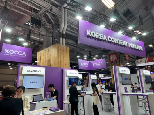 < 한국콘텐츠진흥원(KOCCA)이 운영하는 '코리아 콘텐츠 파빌리온'에서 K-콘텐츠 기업들이 기술을 선보이고 있다>