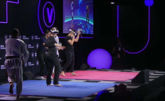 < 비바테크(VivaTech) 행사에서 참가자들이 가상현실(VR) 기술을 통해 '버추얼 태권도'를 시연하고 있다. >