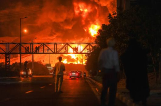 지난 15일(현지시간) 테헤란의 한 정유소가 이스라엘 공습을 받은 뒤 불타고 있다. [사진=테헤란/UPI 연합뉴스] |