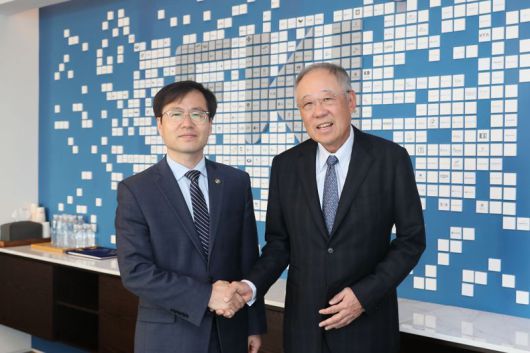 류진 한국경제인협회 회장(오른쪽)이 18일 서울 영등포구 여의도 한국경제인협회를 방문한 여한구 신임 통상교섭본부장과 만나 인사를 나누고 있다. 양측은 관세 등 한미 통상 문제에 대해 의견을 교환했다. 한경협 제공. Copyrightⓒ 파이낸셜뉴스. 무단전재 및 재배포 금지.