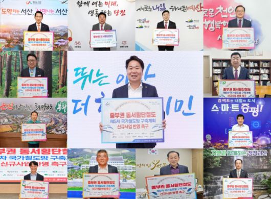 ▲13개 시·군 지자체장이 중부권 동서횡단철도의 국가계획 반영을 촉구했다 ⓒ아산시 |