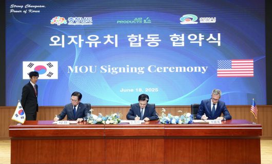 천안시는 18일 충남도청 대회의실에서 김태흠 충남도지사와 김석필 천안시장 권한대행 부시장 등이 참석한 가운데 글로벌 기업 에어프로덕츠와 천안제3일반산업단지 부지에 추가 증설을 위한 투자 협약을 체결했다.