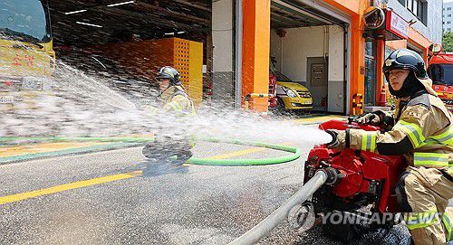 장마 대비 장비 점검하는 소방관들 |