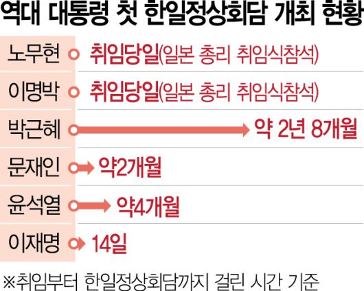 이어 “국제통상환경이나 국제관계들의 어려움이 가중되고 있어서 가까운 관계에 있고 또 보완적 관계에 있는 한국과 일본이 많은 부분에서 협력하면 서로에게 큰 도움이 될 것”이라며 “오늘을 계기로 한국과 일본이 미래지향적으로 조금 더 나은 관계로 발전하기를 기대한다”고 했다. 앞서 이 대통령은 9일 취임 후 이시바 총리와의 첫 전화통화에서도 “상호 국익의 관점에서 미래의 도전 과제에 같이 대응하자”고 했다. 이는 도널드 트럼프 미국 대통령발(發) 통상 문제 등 글로벌 경제 문제에 한일 양국이 공동전략을 구축해 극복하자는 제안을 한 것으로 해석됐다.