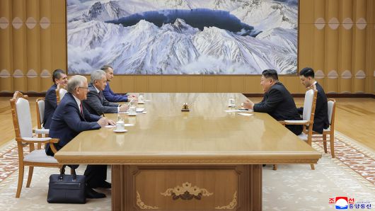 ▲ 지난 17일 김정은 북한 국무위원장이 세르게이 쇼이구 러시아 국가안보회의 서기를 접견했다.