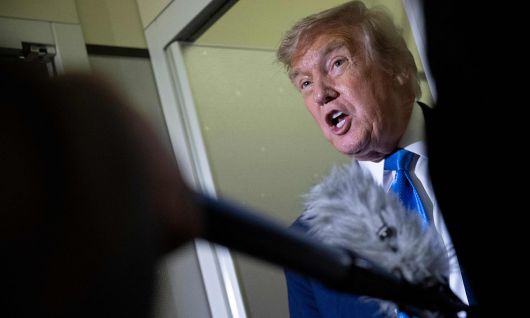 16일(현지시간) G7이 열린 캐나다 캘거리에서 미국으로 조기 복귀하는 에어포스원 기내에서 도널드 트럼프 미국 대통령이 기자들의 질문에 대답하고 있다. AFP연합뉴스 |