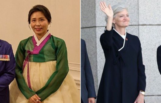 모휘니 대사는 주한대사 신임장 제정식부터 한국과 캐나다 수교 60주년 기념행사 등 공식 석상에서 여러 차례 다양한 한복을 입었습니다. 격이 있는 자리에 더욱 잘 어울리는게 한복이라는 걸 두 여성이 보여주고 있습니다.