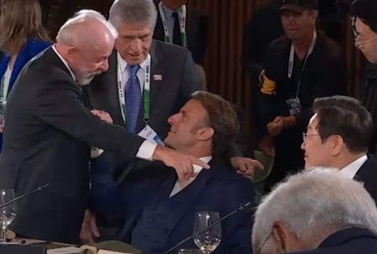 해당 영상에서 룰라 대통령은 마크롱 대통령에게 다가가 손을 잡은 뒤 이 대통령을 손가락으로 가리키며 마크롱 대통령에게 무언가 말을 건넸다. 그러자 마크롱 대통령은 이 대통령을 향해 윙크를 했다. 룰라 대통령이 자기 자리로 돌아가자 두 사람은 대화를 이어갔다. 마크롱 대통령은 만면에 미소를 띤 채 이 대통령의 말을 경청했다.