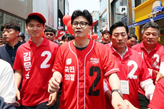 ▲6.3 대선 사전투표 첫날이었던 지난달 29일, 국민의힘 한동훈 전 대표가 광주 동구 충장로우체국 앞에서 선거유세를 하고 있다. ⓒ연합뉴스 |