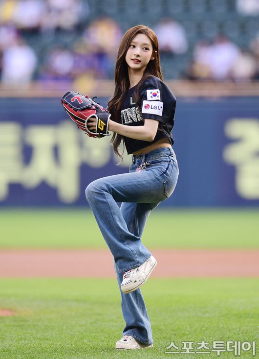 [스포츠투데이(잠실)= 권광일 기자] 2025 신한은행 SOL Bank KBO리그 NC 다이노스와 LG 트윈스스의 경기가 18일 서울 잠실야구장에서 열렸다. 그룹 힛지스 혜린이 잠실 야구장을 찾아 시구를 하고 있다. 2025.06.18. [스포츠투데이 권광일 기자 sports@stoo.com]