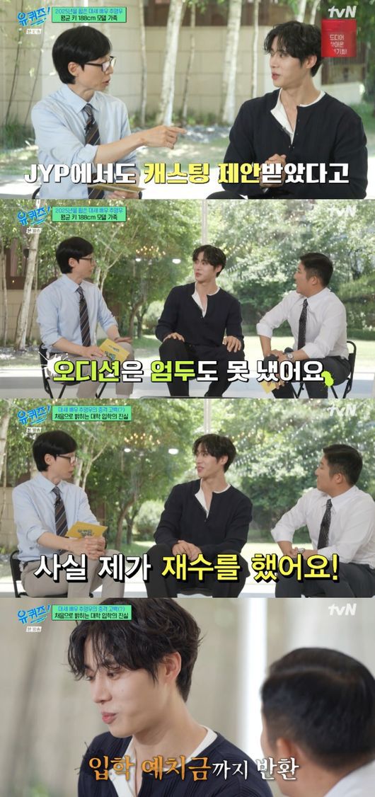 [OSEN=박하영 기자] ‘유 퀴즈 온 더 블럭’ 추영우가 JYP 캐스팅 제안 거절부터 오디션 탈락 비화까지 공개했다.