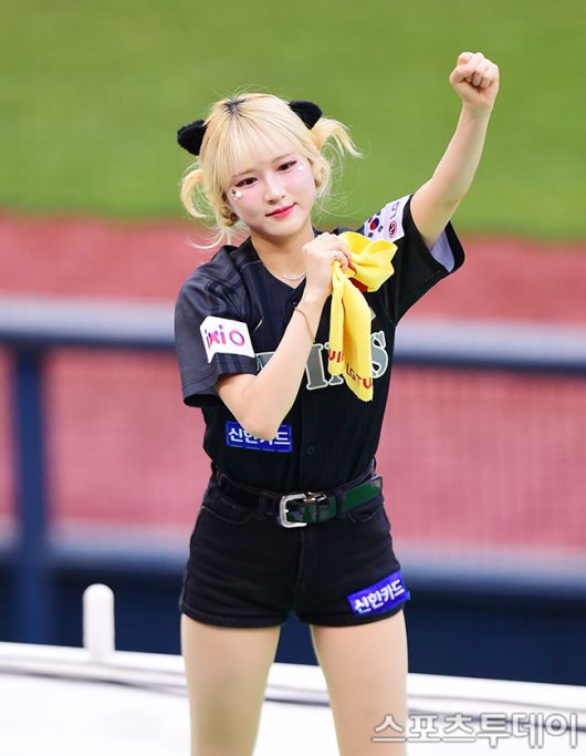 [스포츠투데이(잠실)= 권광일 기자] 2025 신한은행 SOL Bank KBO리그 NC 다이노스와 LG 트윈스스의 경기가 18일 서울 잠실야구장에서 열렸다. 치어리더 임혜진이 신나는 응원을 선보이고 있다. 2025.06.18. [스포츠투데이 권광일 기자 sports@stoo.com]