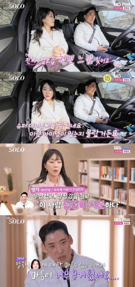 또 영자는 상철 차에 달린 소품을 사진 찍으며 관심을 보였다. 기분이 좋아진 상철은 “저는 아기자기한 거 좋아한다”라고 했고, 영자는 “슈퍼데이트권을 잘 땄네요. 이런 아이템이 있는지 몰랐다”라고 적극적으로 다가갔다.