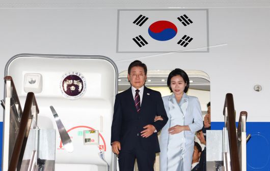 이 대통령과 부인 김혜경 여사는 이날 오전 1시6분쯤 캐나다 방문 일정을 마치고 경기 성남 서울공항에 도착했다. 서울공항에는 고기동 행정안전부 차관, 김병기 더불어민주당 당대표 직무대행 겸 원내대표, 강훈식 대통령비서실장, 우상호 정무수석 등이 나와 있었다.