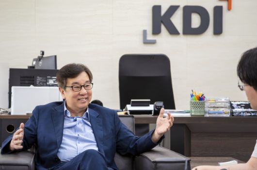 조동철 한국개발연구원(KDI) 원장이 지난 10일 세종시 집무실에서 아주경제신문과 인터뷰하고 있다.[사진=한국개발연구원] |