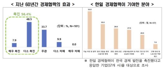 경제 발전에 기여한 협력 분야로는 △기술 이전 및 협력 △일본 진출을 통한 시장 확대 △관광, 문화 산업 발전 △소재·부품·장비 등 공급망 안정화 등을 꼽았다.