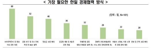 국내 기업들은 가장 필요한 한일 경제 협력 방식으로 '보호무역주의 등 글로벌 통상 이슈 공동 대응'을 꼽았다. 도널드 트럼프 미국 행정부의 상호관세 부과 등 대외 불확실성이 커지는 상황에서 양국의 공동 대응이 필요하다고 본 것이다.