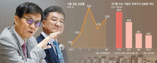 앞서 5월 한은 금융통화위원회가 기준금리를 연 2.75%에서 2.50%로 인하한 직후 열린 기자 간담회에서 이 총재는 “금리정책이 특정 지역의 부동산 가격을 자극하는 방향으로 작용할 정도로 과도한 유동성을 공급하는 문제에 대해 새 정부와 공감대를 이루길 바란다”고 밝힌 바 있다. 이날 이 총재의 발언은 수도권 인구 쏠림과 그로 인한 공급 불균형 문제가 주택 가격 과열로 이어지고 있는 만큼 실효성 있는 공급 대책이 병행돼야 한다는 취지로 풀이된다.