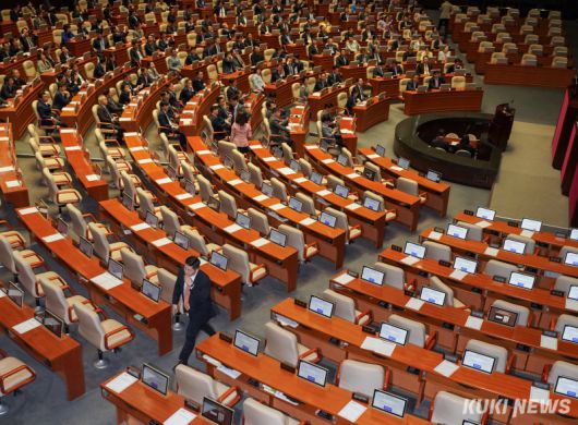 5일 서울 여의도 국회 본회의장에서 '윤석열 전 대통령 등에 의한 내란 행위 진상규명을 위한 특별검사 임명 등에 관한 법률안 수정안'(내란 특검법) 의결을 마치고 김재섭 국민의힘 의원이 퇴장하고 있다. 쿠키뉴스 자료사진 |