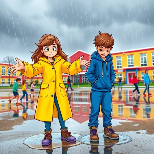 Emma: Ugh, I'm soaked! Why did it have to rain during P.E.?