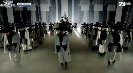 ‘몽경–꿈의 경계에서’라는 테마로 꾸며진 이번 퍼포먼스는 한국 전통 갓과 부채춤, 태극 문양을 모티브로 했고, 군무에 강점이 있는 범접은 칼군무와 이중 구조의 해석력을 통해 한국적 무의식을 강렬하게 형상화했다.