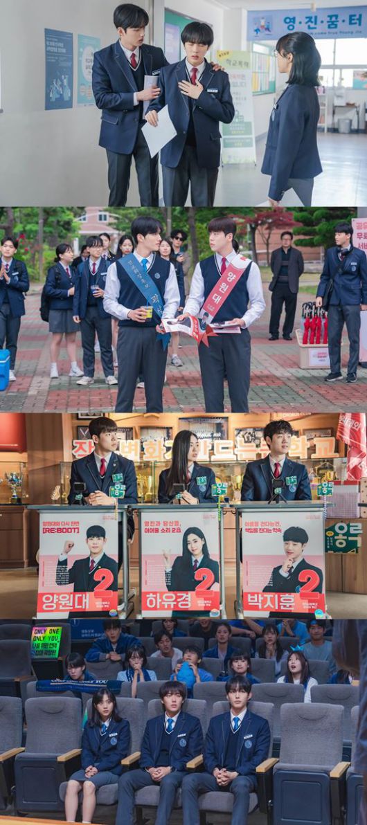 이날 공개된 사진은 본격적인 선거전에 돌입한 곽상현 캠프와 양원대 캠프의 다채로운 모습으로 흥미를 유발한다. 먼저 학생회장 후보 등록을 마치고 심장을 부여잡은 노세훈의 변화에서 그에게 몰아칠 폭풍을 예고하는 듯하다. 영진고 학생들의 워너비 곽상현의 ‘픽’을 받고 전교 굴욕남에서 ‘인싸’로 등극한 노세훈, 과연 이미지 대역전을 성공시킬 수 있을지 롤러코스터 같은 한 달이 궁금해진다.