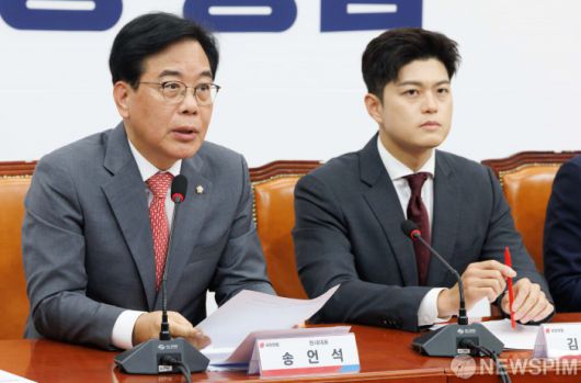 [서울=뉴스핌] 윤창빈 기자 = 송언석 국민의힘 원내대표가 19일 오전 서울 여의도 국회에서 열린 비리백화점 이재명 정부 인사청문회 대책회의에서 모두발언을 하고 있다. 2025.06.19 pangbin@newspim.com |