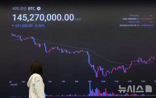 [서울=뉴시스] 황준선 기자 = (기사와 무관한 사진) 지난 13일 서울 강남구 업비트 고객센터 전광판에 비트코인 거래가격이 표시되고 있다. 2025.06.13. hwang@newsis.com |