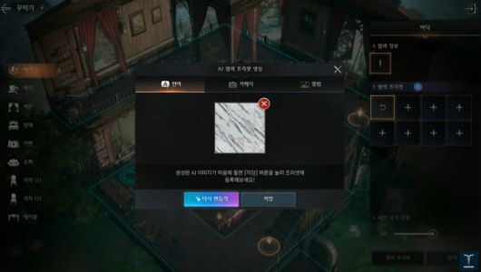캐릭터 프리셋이나 염색, 하우징 같은 꾸미기 요소에도 AI 기술을 적용했다. 원하는 느낌의 색을 텍스트로 입력하면 그에 맞는 결과물이 생각된다. 단순한 색 뿐만 아니라 복잡한 문양도 만들 수 있다. 마이룸에서는 바닥, 벽을 비롯해 각종 가구에도 이 기능을 활용할 수 있다. 예를 들어 대리석 바닥이라는 키워드로 결과물을 생성하면 실제로 대리석 느낌을 주는 타일이 만들어지는 식이다.