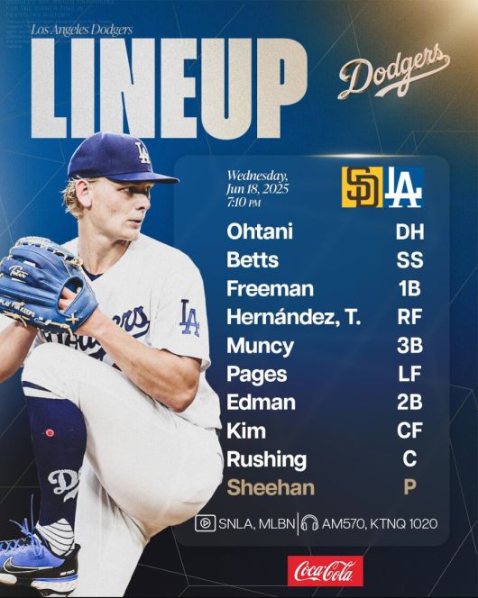 다저스는 오타니 쇼헤이(지명타자)-무키 베츠(유격수)-프레디 프리먼(1루수)-테오스카 에르난데스(우익수)-맥스 먼시(3루수)-앤디 파헤스(중견수)-토미 에드먼(2루수)-김혜성(중견수)-달튼 러싱(포수) 순으로 타순을 짰다.