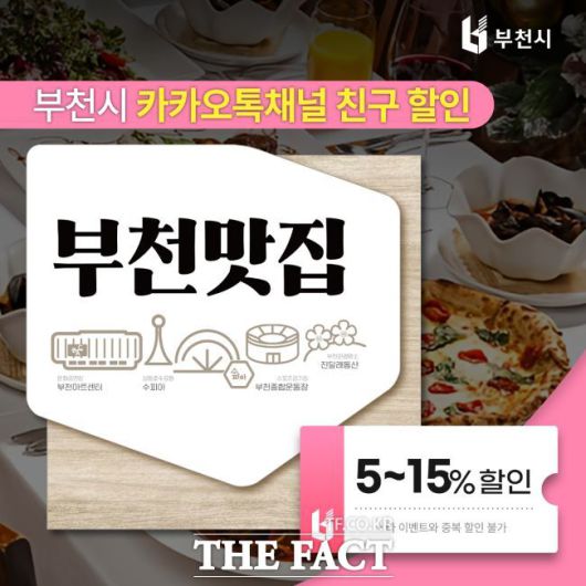 행사 참여 방법은 부천시 공식 카카오톡 채널을 친구 추가한 뒤, 채널에서 제공하는 할인쿠폰을 내려받아 주문 전에 음식점에 제시하면 된다.
