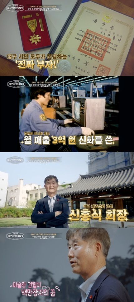 지난 18일 방송된 EBS, E채널 공동 제작 '서장훈의 이웃집 백만장자'에서는 컴퓨터 모니터 제조로 1990년대 초 월 매출 3억 원의 신화를 쓴 '대구 제조업의 전설' 신홍식 회장의 인생 이야기가 펼쳐졌다.