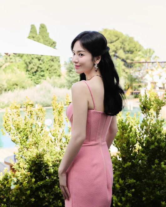 사진 속 송혜교는 어깨를 드러낸 핑크 컬러 드레스로 아름다운 자태를 과시하고 있다. 짧은 단발머리에서 긴 머리로 드라마틱하게 변신한 송혜교는 여신 미모를 드러내는 한편, 검은 선글라스를 매치해 시크한 한끗을 더하며 시선을 붙들었다.
