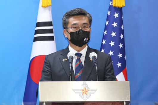 서욱 전 국방부 장관이 2021년 12월 2일 서울 용산구 국방부 청사 브리핑룸에서 열린 제53차 한·미 한미안보협의회(SCM) 공동기자회견에서 발언하고 있다. 사진공동취재단 |