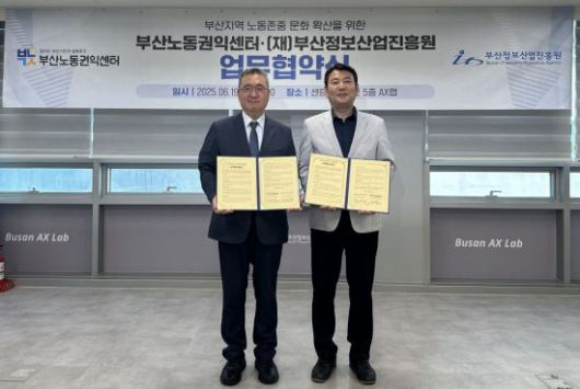 부산정보산업진흥원(원장 김태열)이 부산노동권익센터(센터장 석병수)와 노동 인권 향상과 건강한 노사문화 조성을 위한 업무협약을 체결했다.