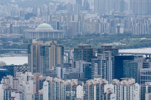 지난 16일 남산에서 바라 본 서울 마포 일대 아파트 단지 . 문재원 기자 |
