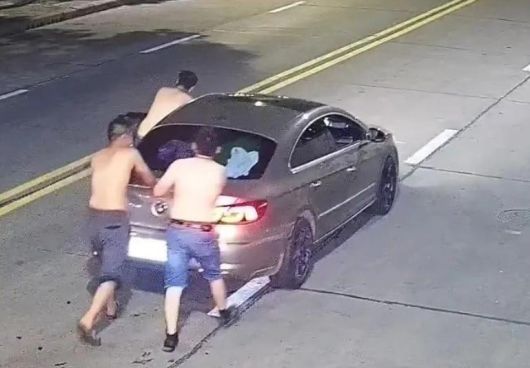 영상에는 윗옷을 벗은 세 남자가 차를 밀고 가는 모습이 담겼다. 한 남자는 차량 운전석 옆에서 핸들을 잡고 차를 밀었으며, 나머지 두 명도 뒤에서 차량을 밀었다. 이들은 30분 가량 차를 밀어 500m 정도 이동한 뒤 인근 정비소 앞에 멈췄다.