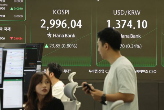 이날 오후 1시 55분 기준 코스피 지수는 전일 대비 1.76포인트 하락한 2970.14를 가리키고 있다. 개인이 4234억 원을 사들이고 있지만, 외국인과 기관이 각각 1576억, 2800억 원을 순매도하며 오전 대비 하락폭을 키웠다. 약 3년 6개월여만의 3000선 돌파를 앞두고 심리적 저항과 함께 차익 실현 심리가 강해진 영향으로 풀이된다.