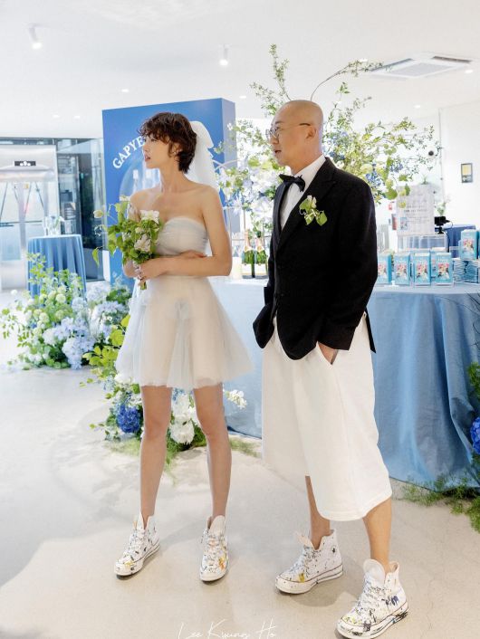 공개된 사진 속 최여진은 어깨 라인이 드러나는 슬림한 드레스부터 미니 드레스에 스니커즈를 매치한 캐주얼한 웨딩룩까지 다채로운 스타일을 완벽하게 소화했다.
