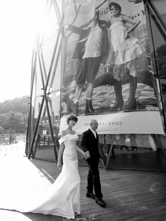 특히 최여진은 시크한 표정과 당당한 포즈로 눈길을사로잡았다. 신랑과 함께 손을 잡고 걷는 모습, 자연을 배경으로 한 사진들은 자유로움과 우아함이 공존하는 분위기를 자아냈다.