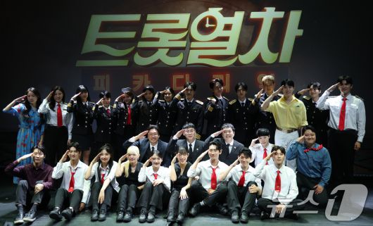 19일 오후 서울 종로구 CGV피카디리1958에서 열린 뮤직쇼 '트롯열차-피카디리역'의 프레스콜에서 출연 배우들이 포즈를 취하고 있다. '트롯열차-피카디리역'(이하 '트롯열차')은 스크린과 무대 고연이 합쳐진 새로운 형태의 무대로, 1970년대부터 2000년대까지 시대별 명곡 15곡으로 구성한 주크박스 형태의 공연이다. 2025.6.19/뉴스1 ⓒ News1 권현진 기자 |