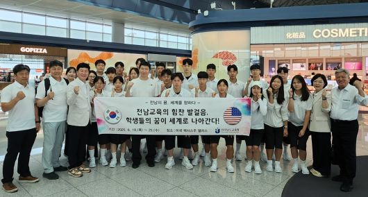 광양하이텍고 2학년 최지우 학생은 “비행기를 타고 미국에 가지만, 마음은 꿈을 향해 날아가는 기분이다. 육상 국가대표를 꿈꾸는 저에게 이번 경험은 큰 디딤돌이 될 것 같다”고 기대했다.