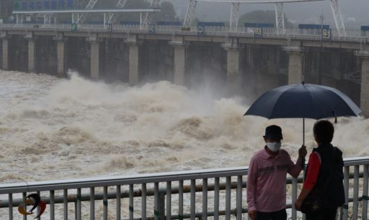 집중호우가 내린 30일 오후 경기 하남 팔당댐을 찾은 시민들이 댐 수문을 열어 하류로 물을 방류하는 모습을 지켜보고 있다. 김정효 기자 hyopd@hani.co.kr |