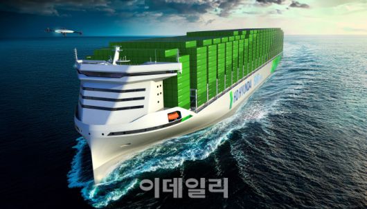 HD한국조선해양이 공개한 1만5000TEU급 원자력(SMR) 추진 컨테이너선 설계모델 |
