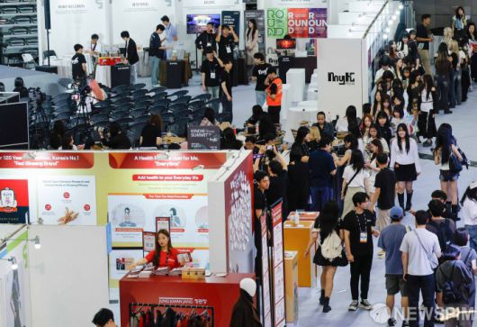 [서울=뉴스핌] 류기찬 인턴기자 = 전 세계가 주목하는 대형 한류 종합 축제 '2025 마이케이 페스타(2025 MyK FESTA)'가 개막한 19일 오후 서울 송파구 올림픽 핸드볼경기장에서 콘텐츠·소비재 분야 한류 연관 산업 전시가 열리고 있다. 22일까지 열리는 이번 페스타는 국내외 한류 팬들과 산업 분야 관계자들이 한자리에 모여 다양한 공연과 글로벌컨퍼런스, 산업전시, 수출 상담 등이 진행된다. 2025.06.19 ryuchan0925@newspim.com