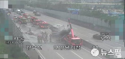 [울산=뉴스핌] 오영균 기자 = 19일 오후 2시 27분쯤 울산시 울주군 언양읍 경부고속도로 서울 방향 언양분기점 인근을 달리던 25t 트레일러 2대가 추돌하는 사고가 났다.