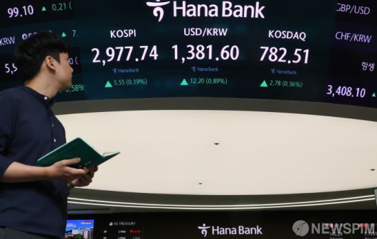 [서울=뉴스핌] 양윤모 기자 = 美 연준이 금리를 네차례 연속 동결한 가운데,19일 오후 코스피가 전장 종가보다 5.55 포인트(0.19%) 상승하며 2,977.74로, 코스닥은 2.78 포인트(0.36%) 상승한 782.51로 마감한 가운데, 서울 중구 하나은행 딜링룸에서 직원들이 업무를 보고 있다. 서울외환시장에서 원·달러 환율은 전장 대비 12.20원 상승한 1,381.60원에 거래를 마감했다. 2025.06.19 yym58@newspim.com