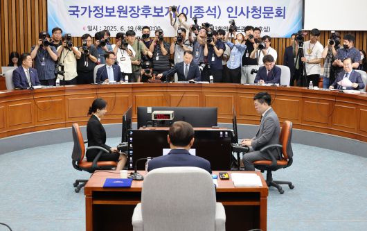 19일 서울 여의도 국회 정보위원회에서 신성범 위원장이 이종석 국가정보원장 후보자 인사청문회를 시작하는 의사봉을 두드리고 있다. 2025.6.19 |