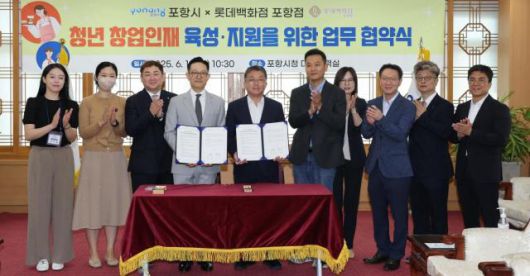 이날 협약식에는 장상길 포항시 부시장을 비롯해 시 관계자와 강성철 롯데백화점 포항점장, 지역 대학 관계자, 청년 창업가 등이 참석했다.